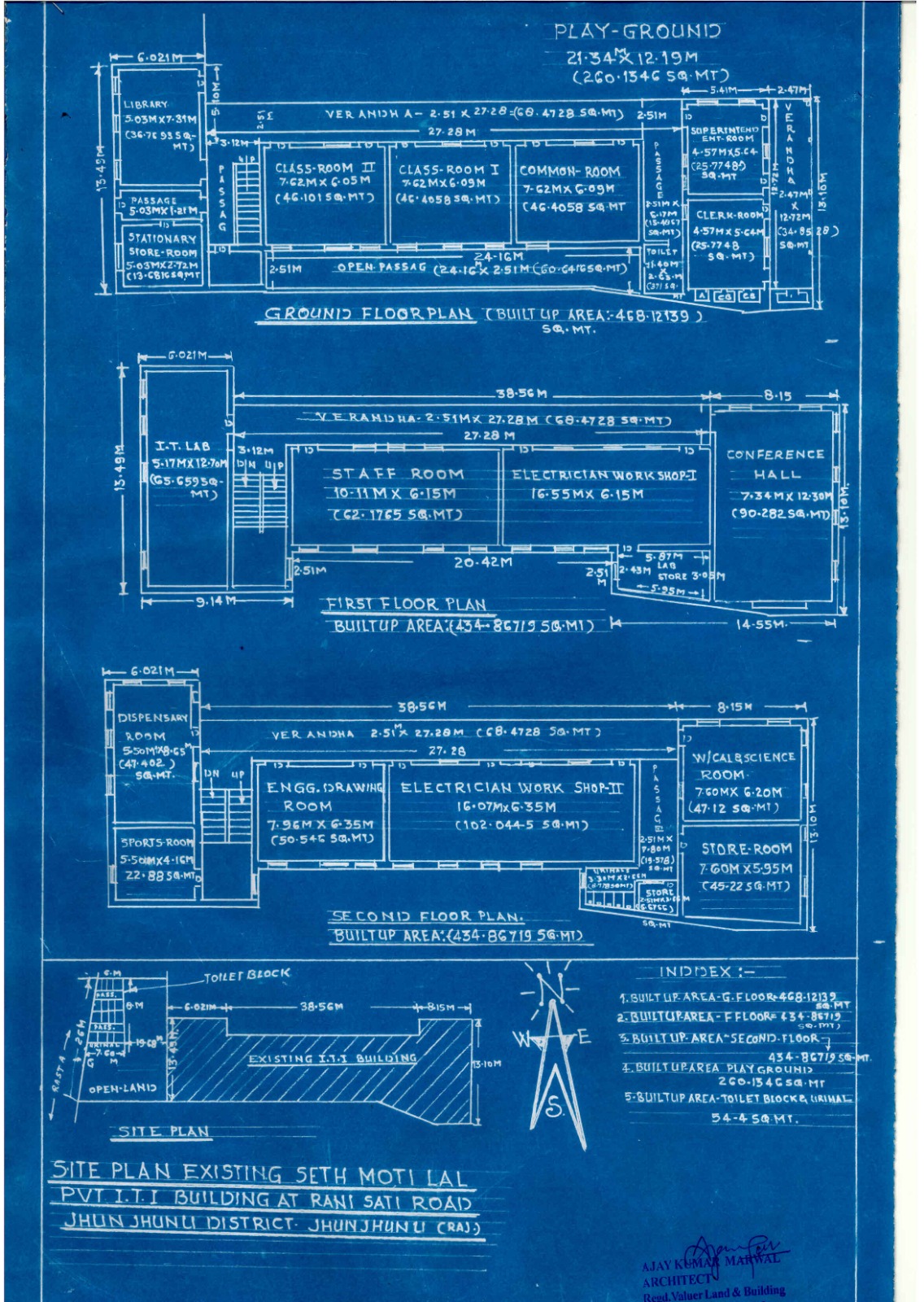 | 1. Total accommodation (sq. meters) Available/required for the whole Institute as per NCVT norms | |